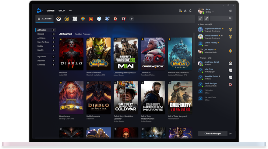 - Battle.net 提供跨游戏的整合体验,玩家可以在一个客户端中管理和启动所有支持的游戏,并通过统一的社交系统与其他玩家互动。